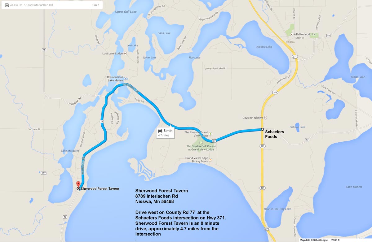 Map with directions to the Sunday Brunch at the Sherwood Forest Tavern - $13.95. Hours - 9:30 am to 1 pm, but try to show up sometime around 10 am so we can be there together.