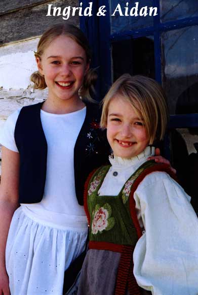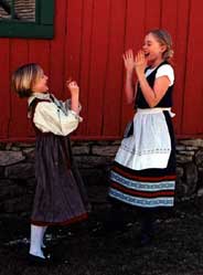 | Ingrid and Aidan are from Decorah Iowa. Aidan is 8 years old and Ingrid is 11. Ingrid has many interests including horses, drawing, dancing, singing and being outdoors. Aidan likes singing, jumping rope, playing hop scotch and reading. The two of them will be teaching and performing Norwegian songs and rhymes at the children's tent. Ingrid has attended Skogfjorden Norwegian Language camp for 3 years and is traveling to Norway this summer. Aidan plans to attend Skogfjorden for her first time next year. |